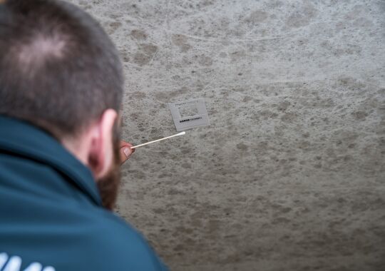 Efter fjernelsen af skimmelsvampen udtages der en Mycometer Surface test for at sikre, at afrensningen er foretaget tilfredsstillende. Vi sørger altid for at inkludere analyseresultaterne i en kvalitetsrapport, der beskriver den anvendte afrensningsmetode.